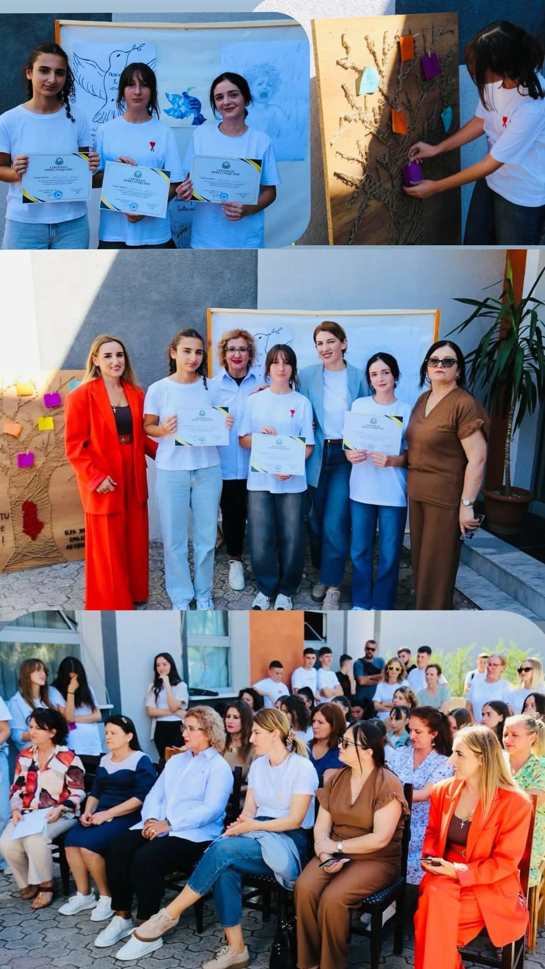Në përmbyllje të aktivitetit u vlerësuan me certifikata mirënjohjeje si “Modelet më të mira të Paqes 2025» në SHMB Zharrëz, nxënëset: Blerdiana Brace, Fjorela Bani dhe Klejsa Azizi, moment, i cili shkaktoi emocione te vecanta dhe te papritura. Emrat e tyre u përcaktuan nëpërmjet një anketimi online dhe anonim nga vetë nxënësit e shkollës.